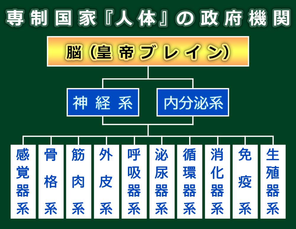 如何ですか、皆さん。『人体』が本当の国のように組織され、機能しているということがお分かりいただけたのではないでしょうか。